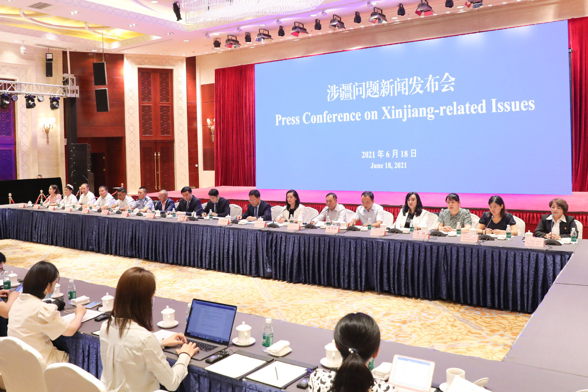 A news conference on Xinjiang-related issues is held in Beijing on June 18, 2021. [Photo/Xinhua]