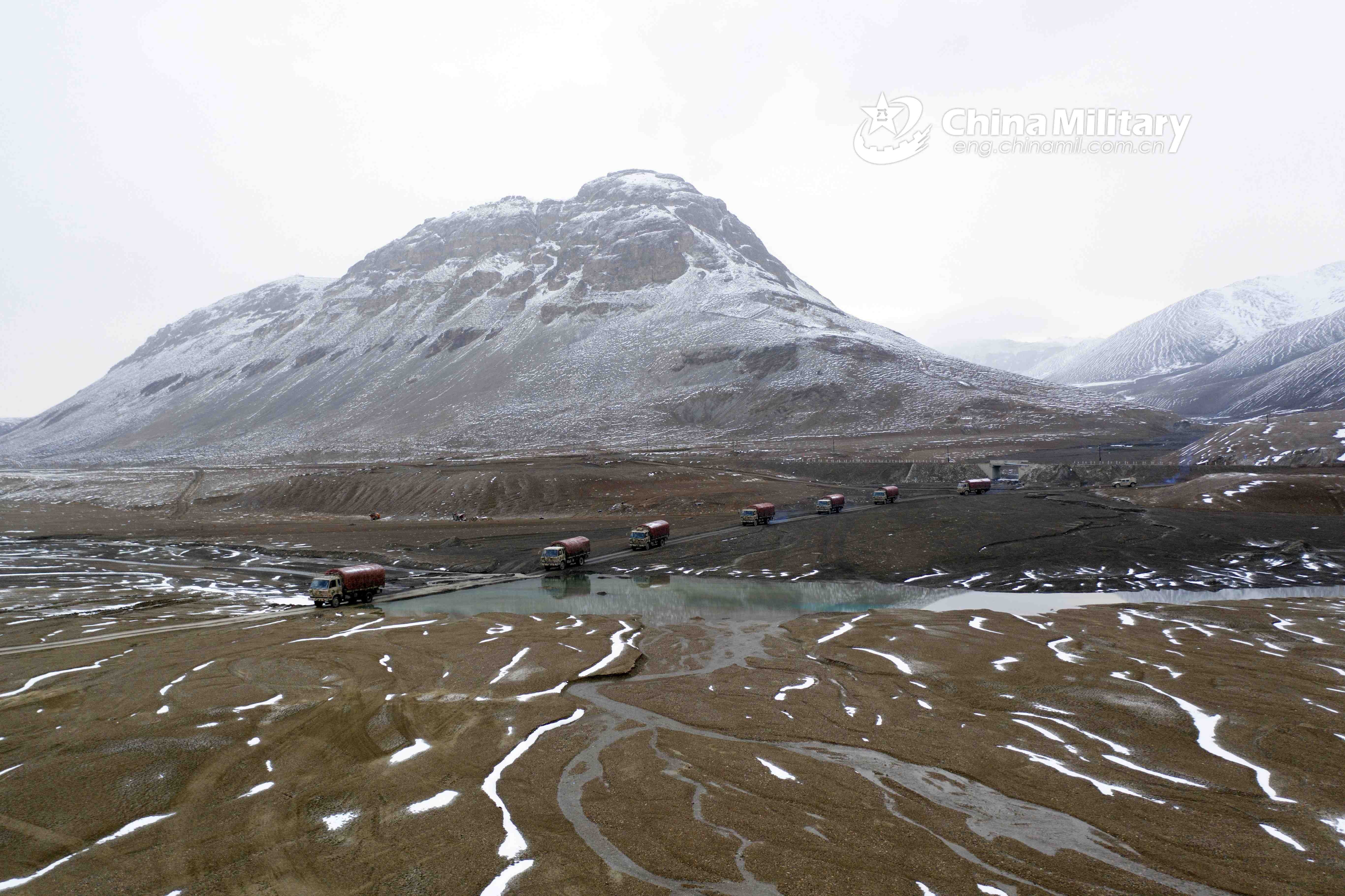 A convoy of military vehicles carrying supplies is en route to a scheduled place during a driving skill training exercise organized by a regiment under the PLA Xinjiang Military Command on June 16, 2021. (eng.chinamil.com.cn/Photo by Li Renxi)