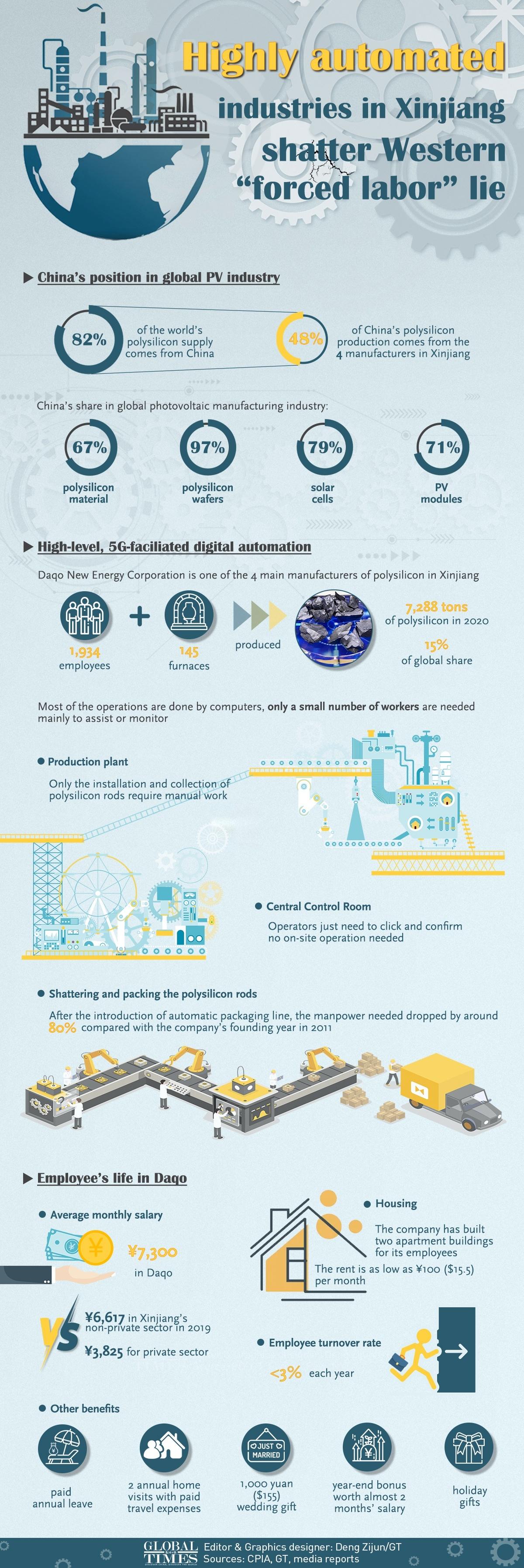 Highly automated industries in Xinjiang shatter Western "forced labor" lie Infographic: Deng Zijun/GT