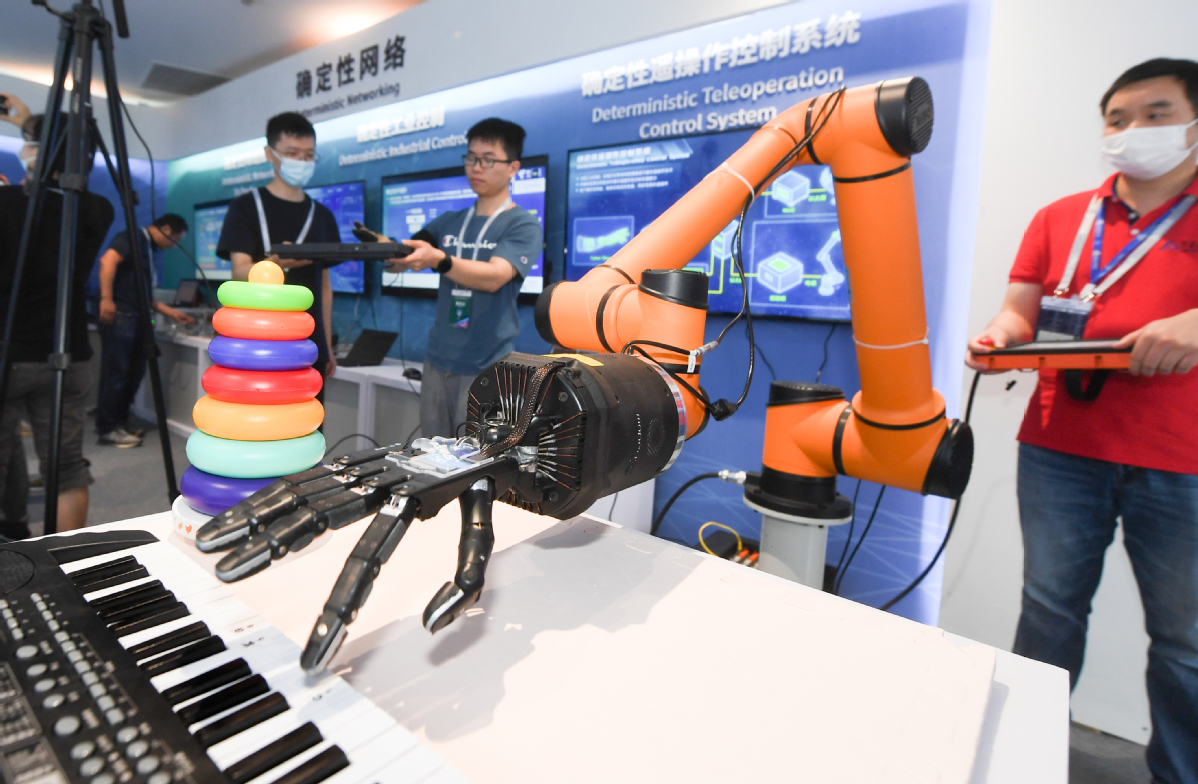 A smart robot plays an electronic keyboard during the Future Network Development Conference in Nanjing, Jiangsu province, on June 17. [Photo by Shao Dan/For China Daily]
