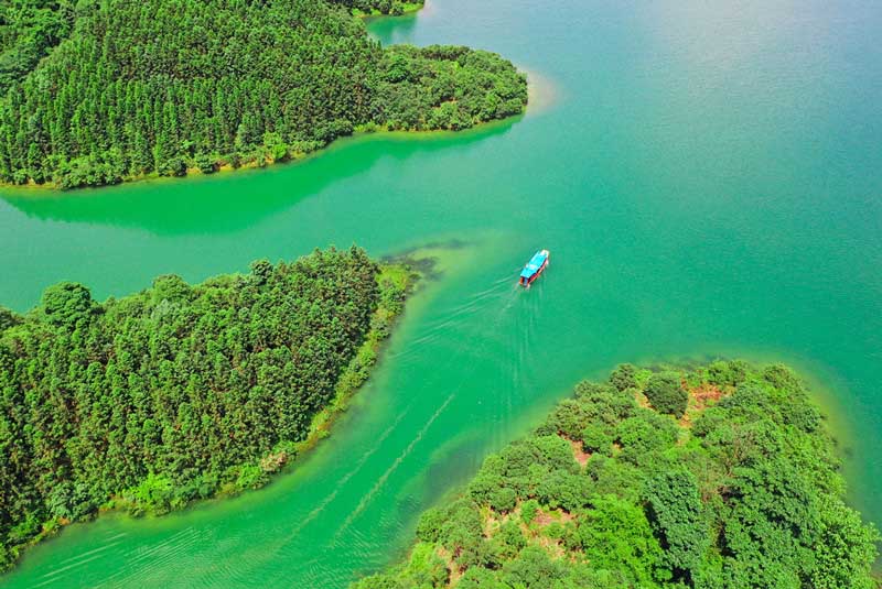 Photo taken on June 13, 2021 shows a beautiful view in Tianhu National Wetland Park in Changning, central China’s Hunan province. (Photo by Zhou Xiuyuchun/People's Daily Online)