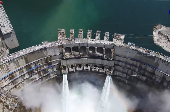 The facility is an ultra-high double-curvature arch dam with a maximum height of 289 meters and an arc length of 709 meters.
