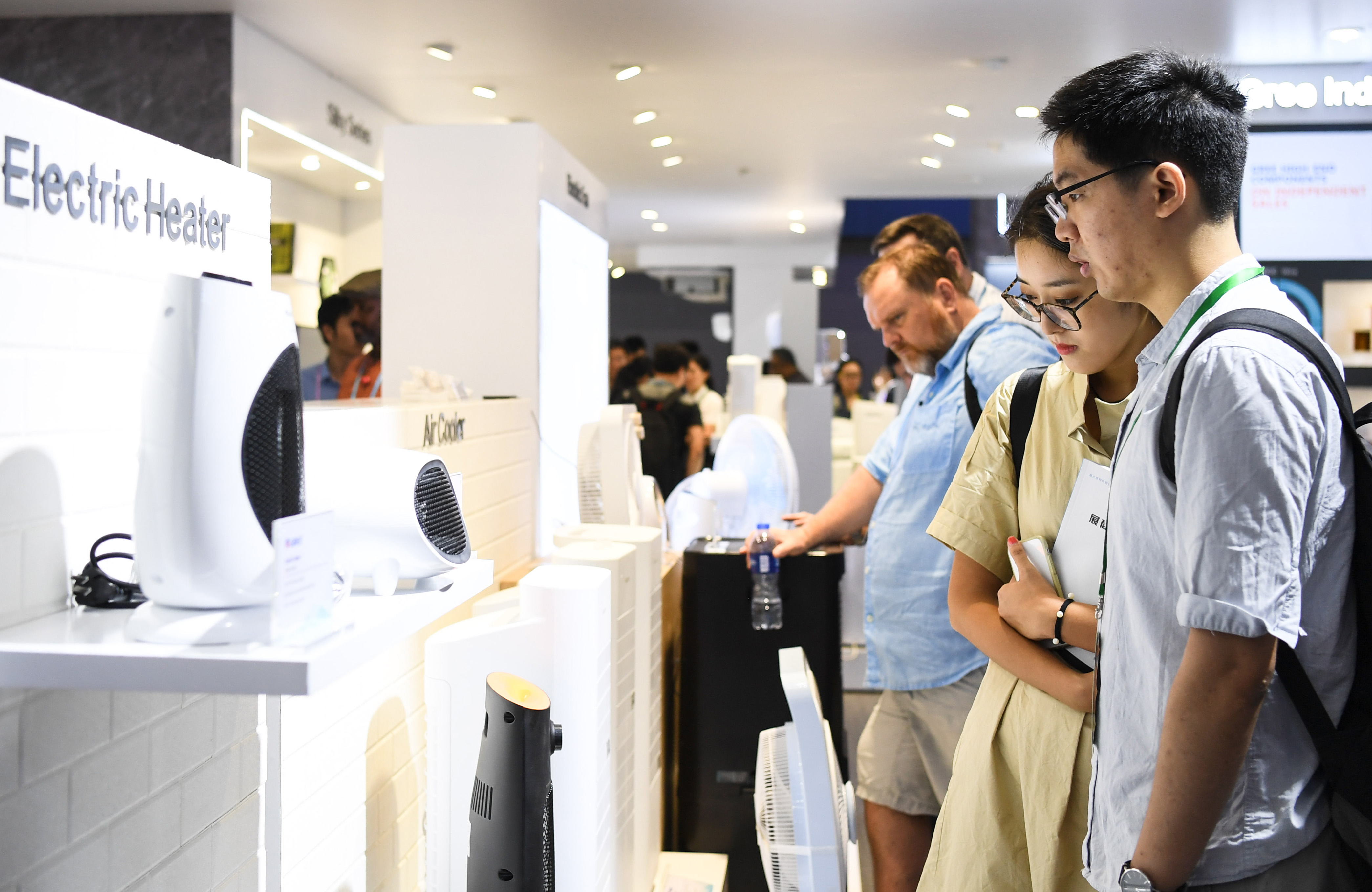 Buyers look at the displayed home appliances at the 126th China Import and Export Fair, also known as the Canton Fair, in Guangzhou, south China's Guangdong Province, Oct. 15, 2019. (Xinhua/Deng Hua)