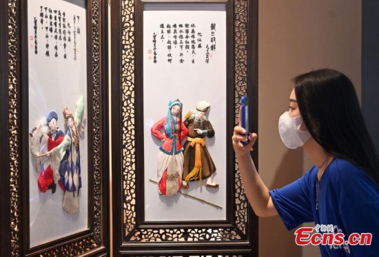 People visit an exhibition at Hebei Museum in Shijiazhuang on June 30, 2021. The exhibition that kicked off on Wednesday presented achievements of the provincial intangible cultural heritage conservation. (Photo: China News Service/ Zhai Yujia)