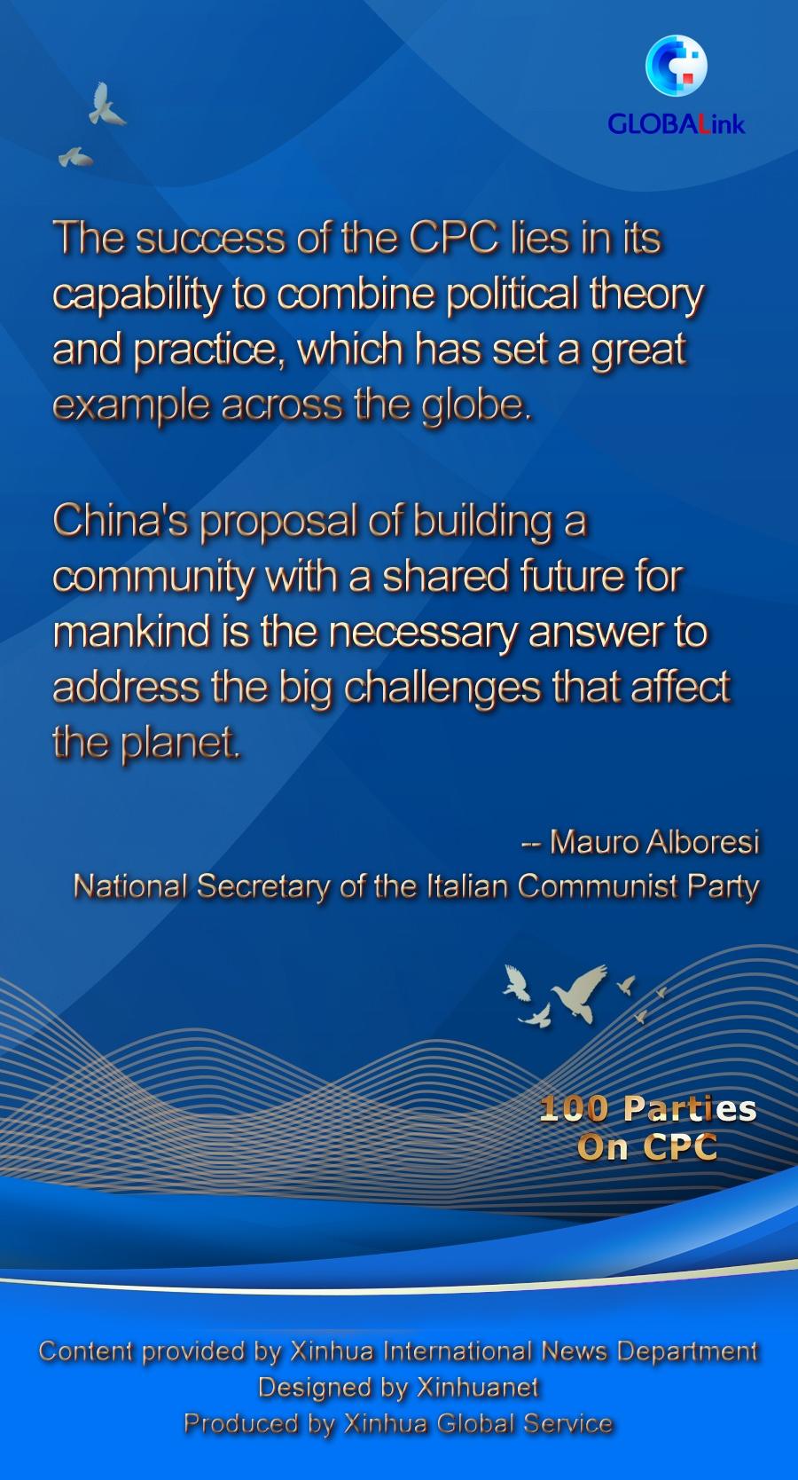 Noting this year marks the 100th anniversary of the CPC, Alboresi said that the centenary, "to which we pay great attention, is an opportunity for reflection for all the international communist movement."