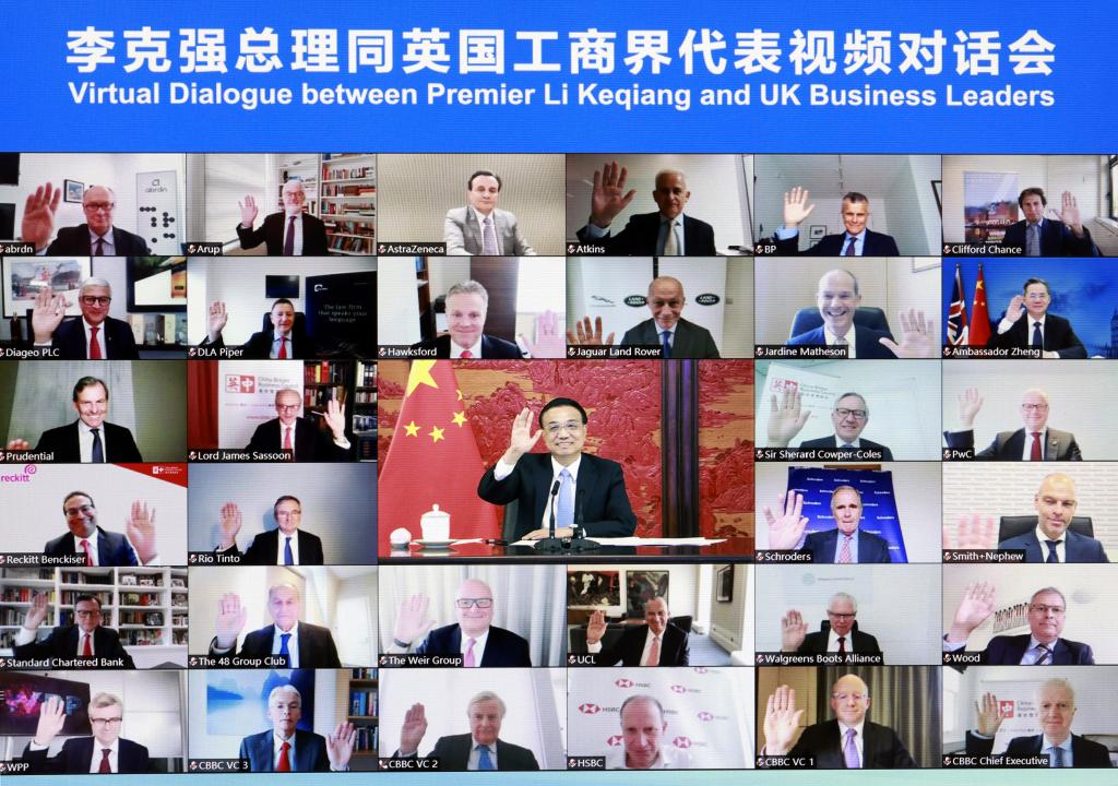 Chinese Premier Li Keqiang holds a virtual dialogue with UK business leaders in Beijing, capital of China, July 6, 2021. (Xinhua/Ding Lin)