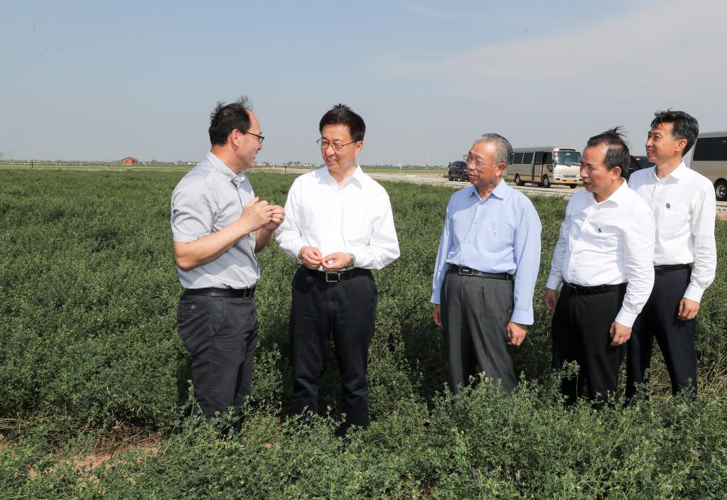 At a modern agriculture technological innovation center, Han said the development and application of technologies in biological agriculture and saline agriculture are promising.