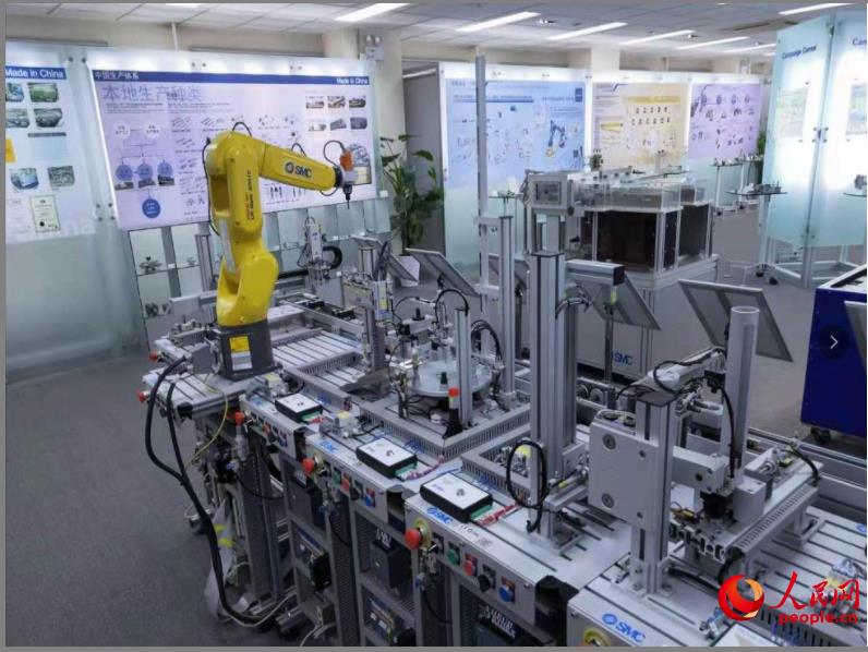 Photo shows an industrial robotic arm made by SMC. (People’s Daily Online/Zhao Chao)