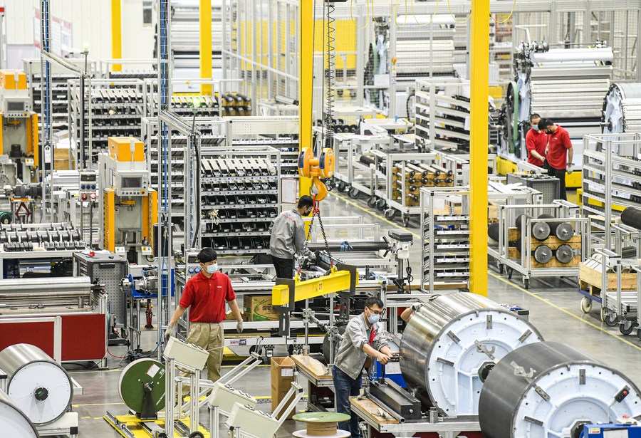 Workers are busy at the factory of Zhuolang Intelligent Machinery Co., Ltd. in Urumqi, northwest China's Xinjiang Uygur Autonomous Region, Oct. 22, 2020. (Xinhua/Wang Fei)
