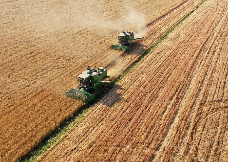 China reaped another bumper summer harvest, with about 335 million mu (22.3 million hectares) of wheat reaped this year, according to the Ministry of Agriculture and Rural Affairs (MARA). The ministry also estimated that the summer grain yield is expected to increase by 3 kg per mu (one mu is about 667 square meters) and that grain output will hit a record high.