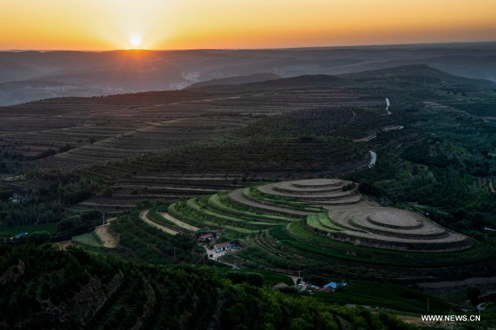 Aerial photo taken on July 13, 2021 shows terraced fields in Pengyang County of Guyuan, northwest China's Ningxia Hui Autonomous Region. (Xinhua/Feng Kaihua)