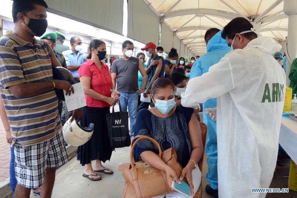 People get their first dose of Sinopharm COVID-19 vaccine at a vaccination center in Colombo, Sri Lanka, July 14, 2021. Sri Lanka has to date recorded 277,519 cases while 3,574 deaths have been reported. The country has inoculated over 4 million doses of the COVID-19 vaccines with a majority receiving China's Sinopharm vaccines. (Photo by Gayan Sameera/Xinhua)