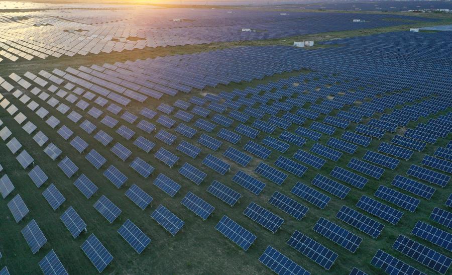 Aerial photo taken on July 7, 2020 shows a photovoltaic industrial park in Gonghe County of Hainan Tibetan Autonomous Prefecture in northwest China's Qinghai Province. (Xinhua/Zhang Hongxiang)