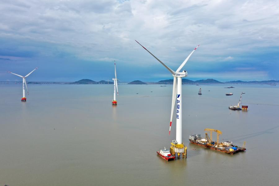 Photo taken on May 28, 2021 shows an offshore wind farm of China Huadian Corporation in southeast China's Fujian Province. (Xinhua/Jiang Kehong)