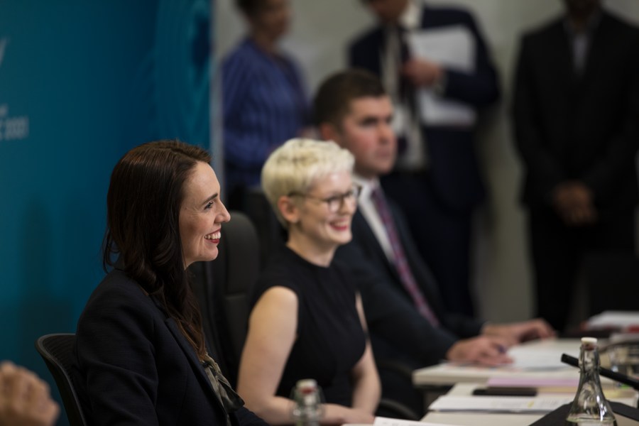 New Zealand Prime Minister Jacinda Ardern (1st L) chairs a virtual meeting of leaders representing the Asia-Pacific Economic Cooperation (APEC) economies in Wellington, New Zealand, on July 16, 2021. (Xinhua)