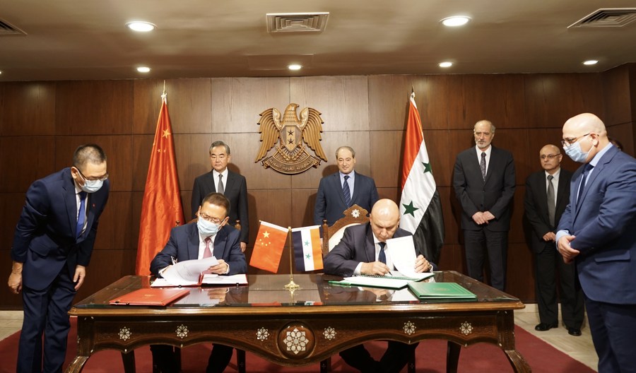 China and Syria sign cooperation documents at the Syrian Foreign Ministry in Damascus, Syria, on July 17, 2021. (Photo by Wang Jian/Xinhua)