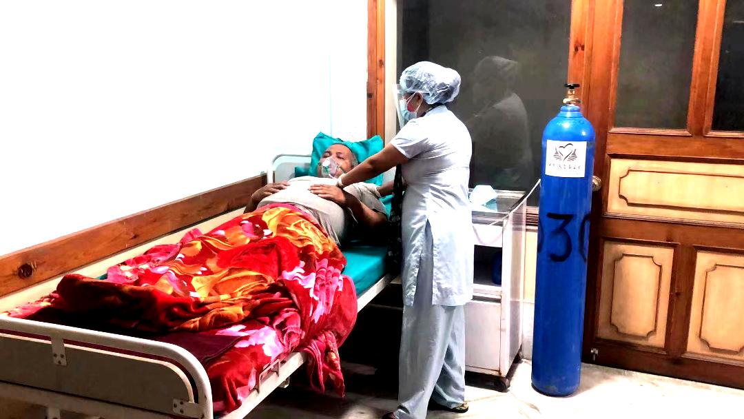 China Foundation for Poverty Alleviation holds an opening ceremony for an emergency oxygen station project in Katmandu, Nepal, May 23, 2021. The foundation has donated three oxygen stations to the country, including 50 oxygen cylinders, 200 sets of personal protective kits, and two sterilizers, to help Nepal fight against COVID-19. A local patient receives treatment at an oxygen station.(Photo by China Foundation for Poverty Alleviation)