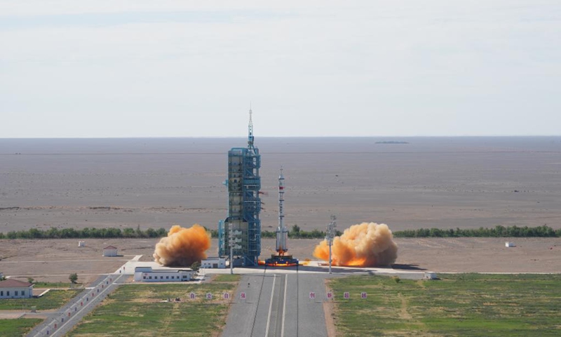The manned spacecraft Shenzhou-12, atop a Long March-2F carrier rocket, is launched from the Jiuquan Satellite Launch Center in Northwest China's Gansu Province on June 17, 2021. Photo: Xinhua