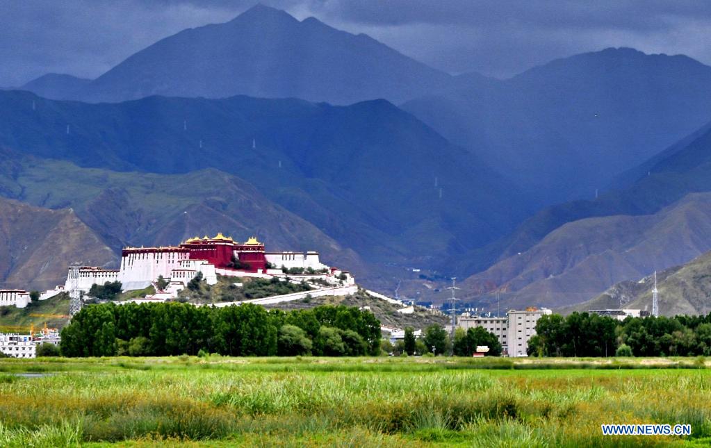 The Potala Palace is seen near the Lhalu wetland national nature reserve in Lhasa, southwest China's Tibet Autonomous Region, July 17, 2021. (Xinhua/Zhang Rufeng)
