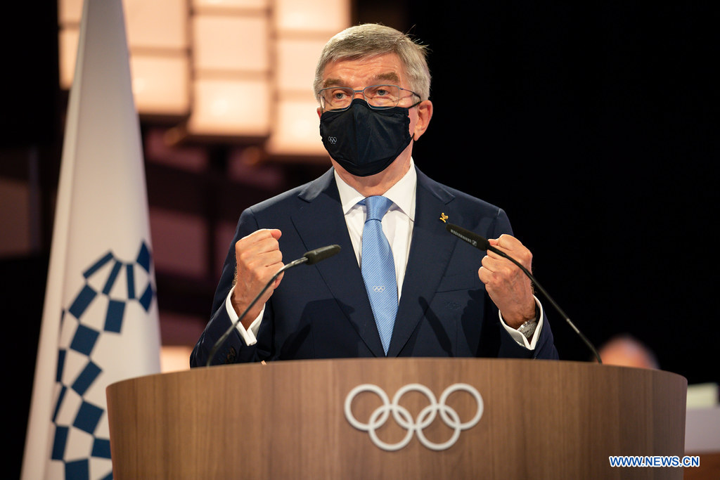 International Olympic Committee (IOC) President Thomas Bach speaks during the 138th IOC Session in Tokyo, Japan, on July 20, 2021. The move of adding "together" into the Olympic motto of "faster, higher, stronger" was unanimously approved at the 138th IOC session here on Tuesday. (IOC/Handout via Xinhua)