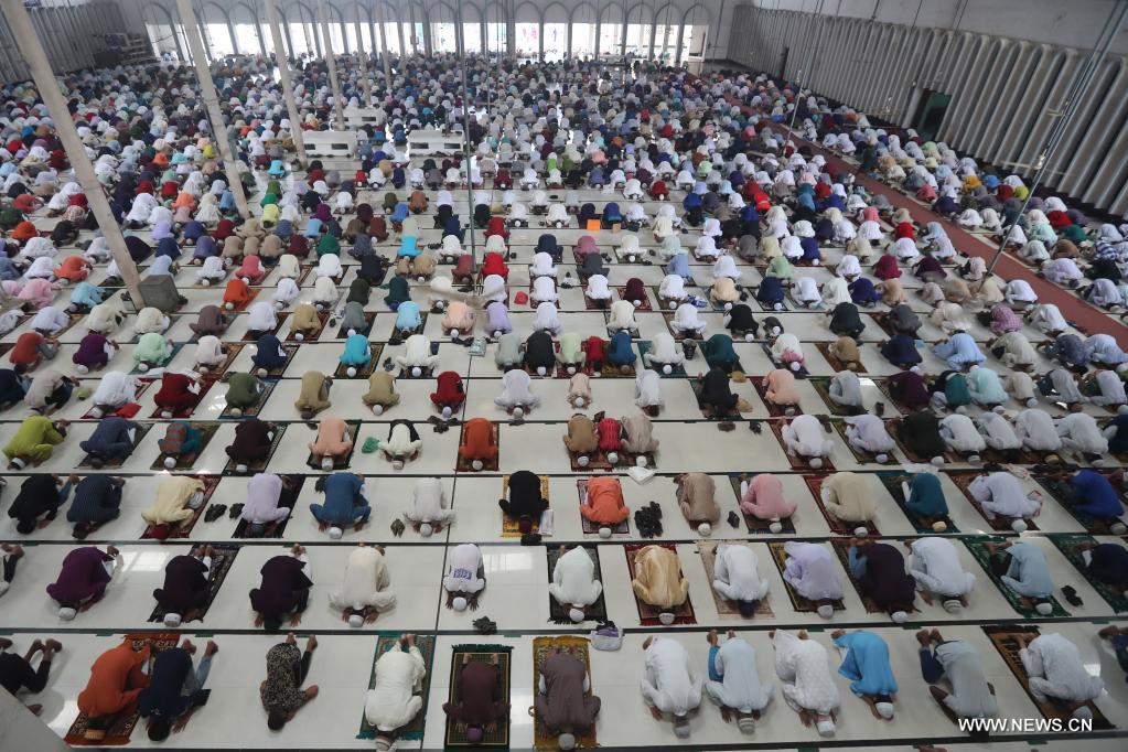 People pray during the Eid al-Adha festival in Dhaka, Bangladesh, July 21, 2021. (Xinhua)