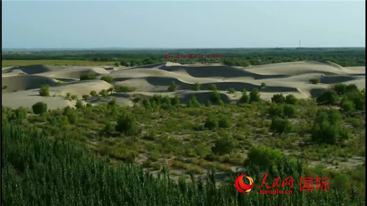 Photo shows a view of a sand-fixing forest in Makit county, northwest China’s Xinjiang Uygur Autonomous Region. (People’s Daily Online/Walid Abdallah)