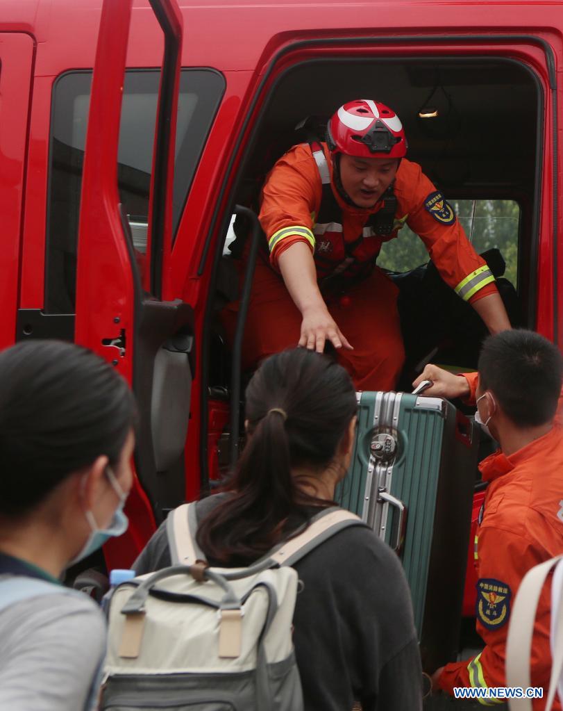 Stranded people evacuated from flood-hit Zhengzhou, Henan