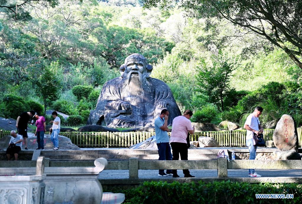 Photo taken on July 7, 2021 shows the Statue of Lao Tze in Fengze District of Quanzhou, southeast China's Fujian Province. China's "Quanzhou: Emporium of the World in Song-Yuan China" was added to the UNESCO World Heritage List as a cultural site on Sunday, bringing the total number of the country's UNESCO World Heritage sites to 56. Quanzhou, a coastal city in China's Fujian Province, was a global maritime trade center back in the Song and Yuan dynasties. (Xinhua/Lin Shanchuan)
