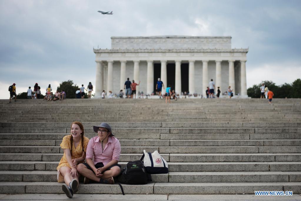 People visit the Lincoln Memorial at the National Mall in Washington D.C., the United States, on July 24, 2021. The current COVID-19 surge in the United States will steadily accelerate through this summer and fall, an article published by the U.S. non-profit media organization National Public Radio (NPR) has said. (Photo by Ting Shen/Xinhua)