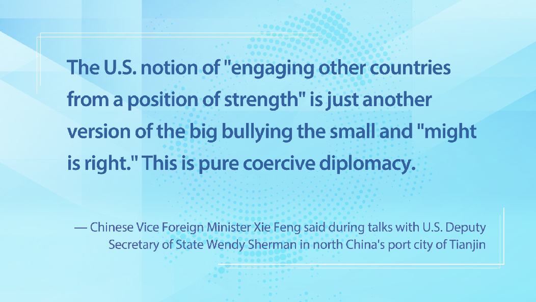 The U.S. notion of "engaging other countries from a position of strength" is just another version of the big bullying the small and "might is right." This is pure coercive diplomacy, he added.