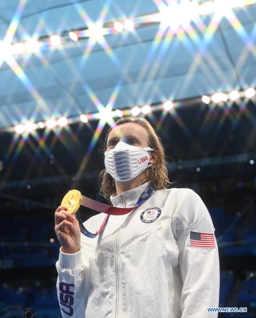 Kathleen Ledecky of the United States of America poses after the awarding ceremony for women's 1500m freestyle final at the Tokyo 2020 Olympic Games in Tokyo, Japan, July 28, 2021. (Xinhua/Xia Yifang)