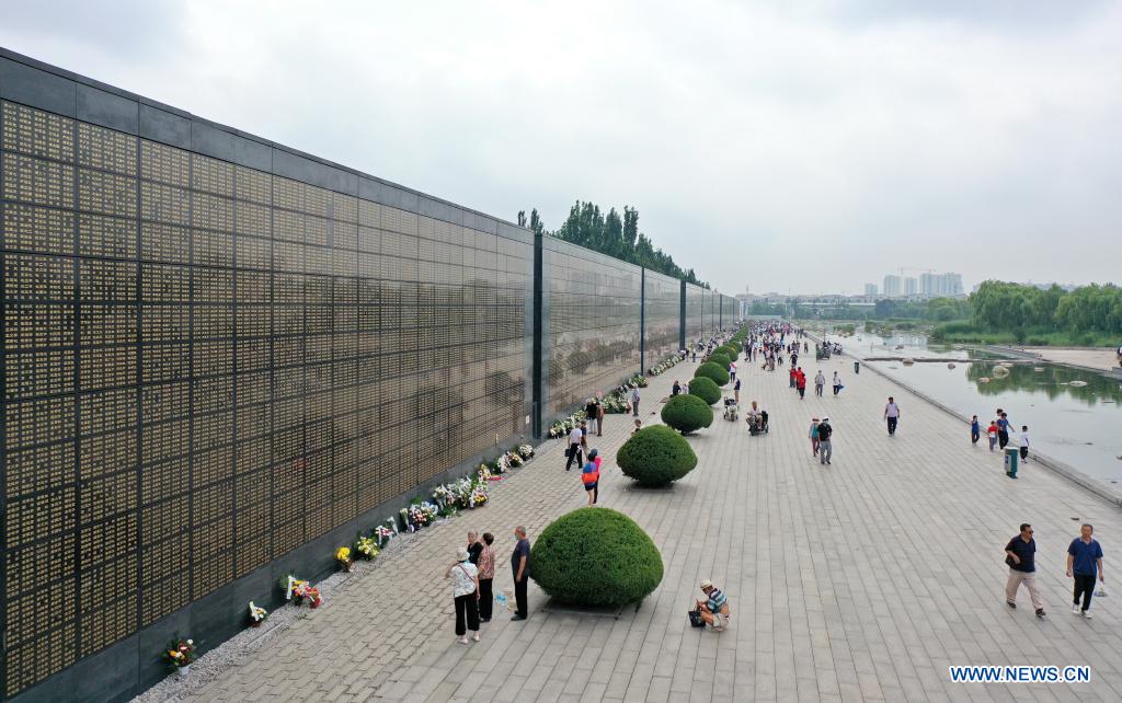 People mourn for victims in the 1976 Tangshan earthquake at the Tangshan Earthquake Memorial Park in north China's Hebei Province, July 27, 2021. Wednesday marks the 45th anniversary of the Tangshan earthquake. The 7.8-magnitude quake struck the city of Tangshan in Hebei Province on July 28, 1976, killing more than 240,000 people and destroying virtually all buildings. (Xinhua/Mu Yu)