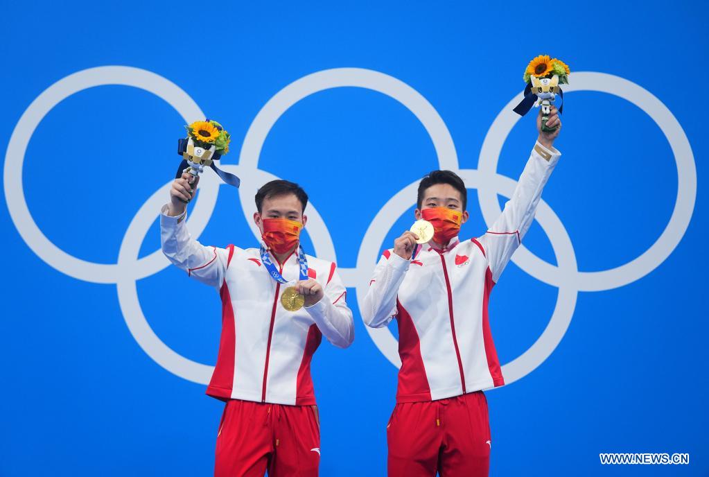 TOKYO, July 28 (Xinhua) -- Wang Zongyuan and Xie Siyi won China an Olympic gold medal in the men's synchronised 3m springboard with 467.82 points here on Wednesday, 23.46 points ahead of the second-placed United States.