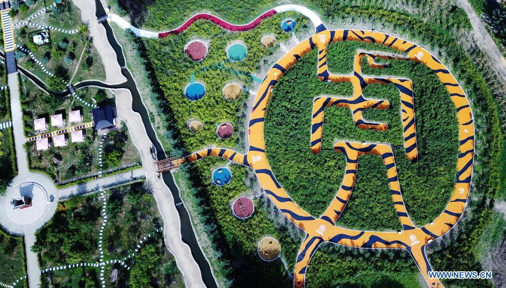 Photo taken on July 26, 2021 shows an aerial view of a forest park under the China Hengdaohezi Feline Breeding Center in northeast China's Heilongjiang Province. The China Hengdaohezi Feline Breeding Center in northeast China's Heilongjiang Province is the world's largest breeding center for Siberian tigers, an endangered species. Dubbed "home of Siberian tigers", one of the center's forest parks in Hailin City now accommodates some 400 big cats and provides re-wilding training areas which take up 40,000 square meters. In 2021, 30 Siberian tiger cubs have been born at the park by the end of July, and most of the newborns are being taken care of by professionals at the breeding center. (Xinhua/Wang Jianwei)
