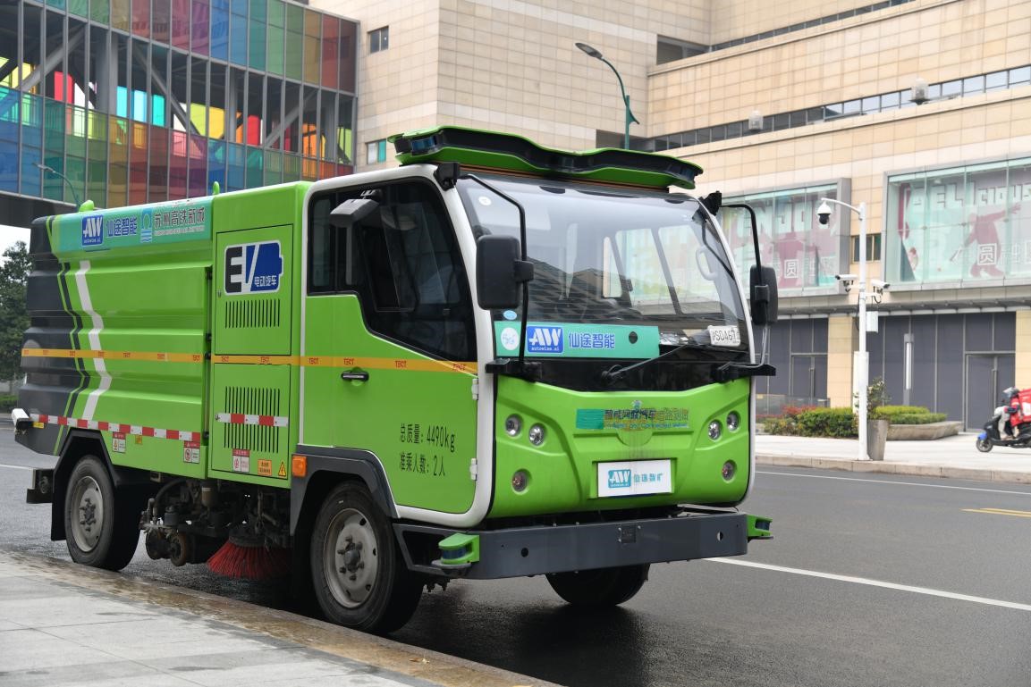 Photo taken on March 21, 2021, shows a self-driving sanitation vehicle in Suzhou, east China’s Jiangsu province. (Photo by Lin Hai/People’s Daily Online)