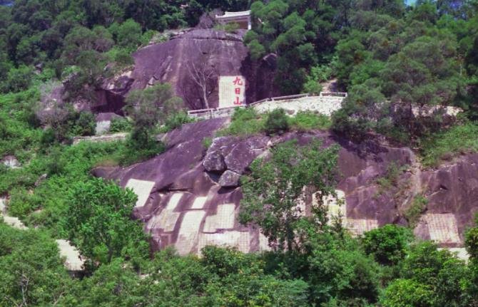 Photo shows the Jiuri Mountain Wind-Praying Inscriptions. These inscriptions, carved into a cliff, record the ritual ceremonies used to pray for favorable winds to aid voyages, which were held by state commissioners, local officials and members of the imperial clan responsible for the management of overseas trade in the Song Dynasty (960-1279). (Photo/Cheng Dongdong)