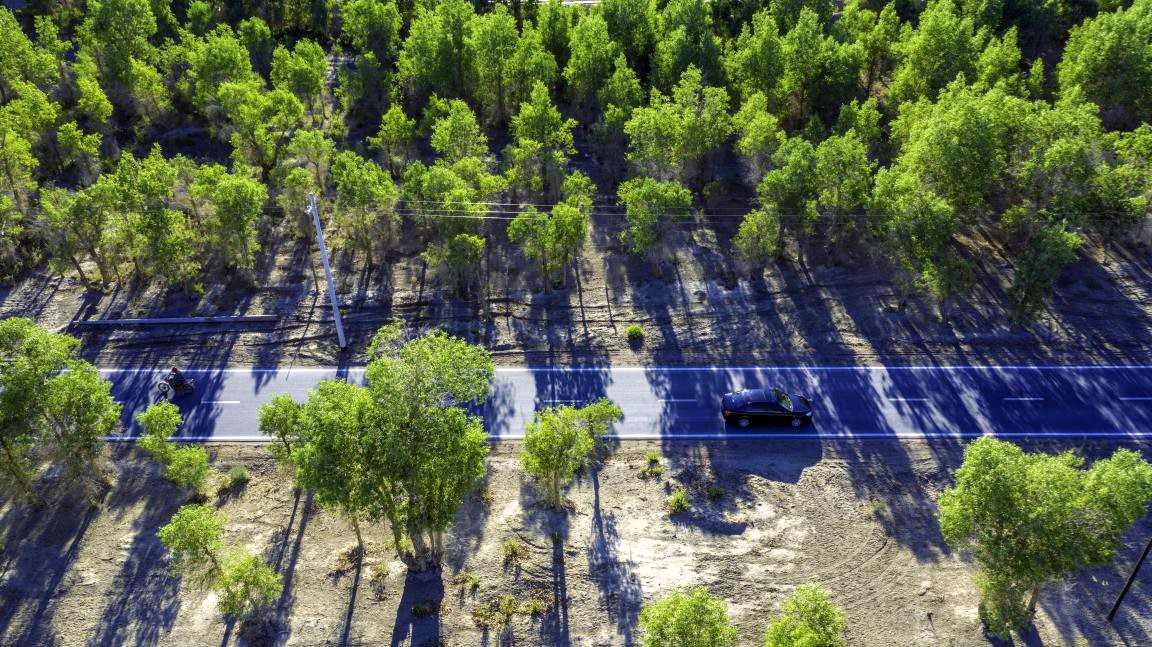Photo shows a rural road in Yuli county, Bayingolin Mongol autonomous prefecture, northwest China’s Xinjiang Uygur autonomous region. (Photo by Li Fei/People’s Daily Online)