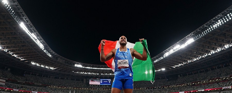 TOKYO, Aug. 1 (Xinhua) -- The Tokyo Olympics reached a climax at the halfway point in its schedule, as Italy's Lamont Marcell Jacobs came out a surprise winner in the men's 100m race on Sunday.