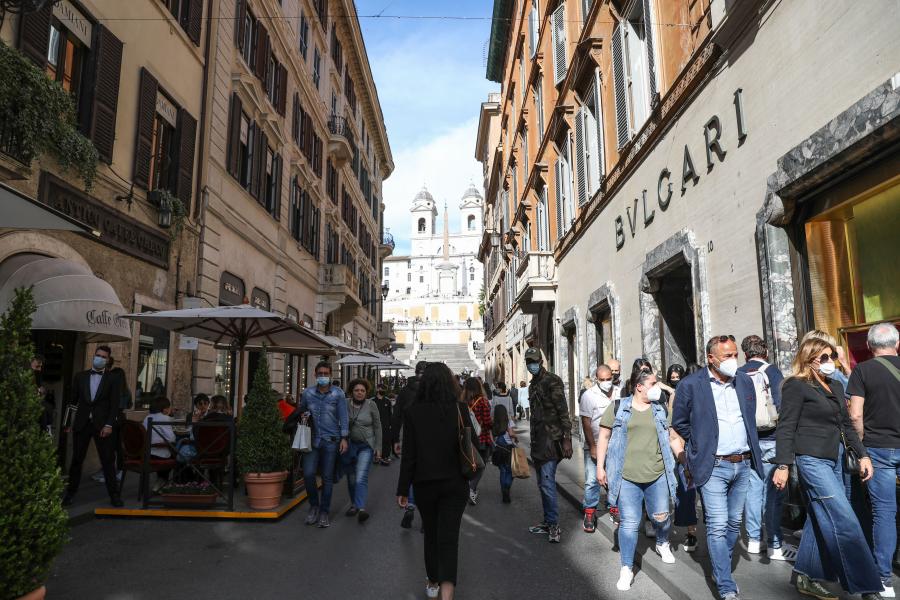 People walk on Via dei Condotti in Rome, Italy, May 15, 2021. (Xinhua/Cheng Tingting)