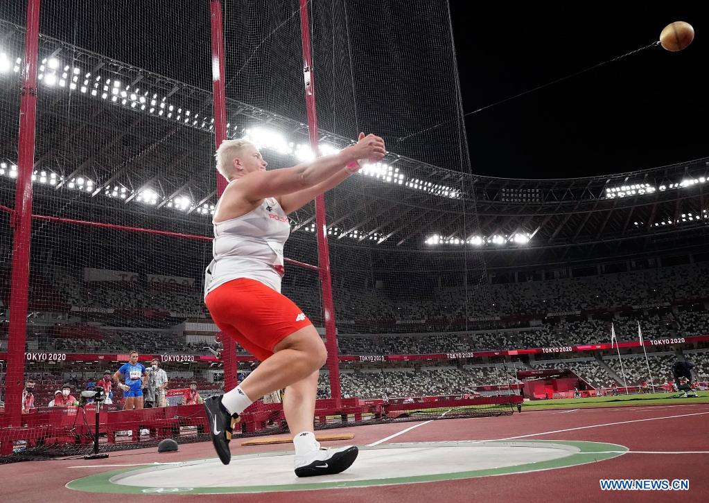 Anita Wlodarczyk of Poland competes during the Women's Hammer Throw Final at the Tokyo 2020 Olympic Games in Tokyo, Japan, Aug. 3, 2021. (Xinhua/Wang Lili)