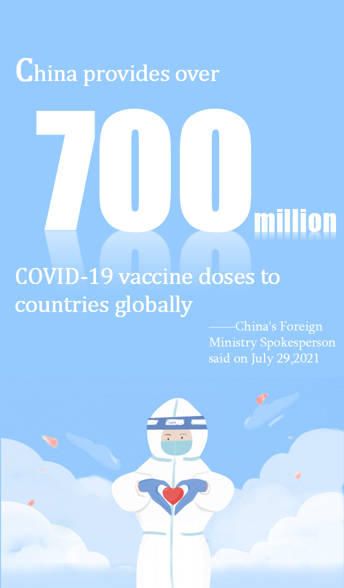 China had offered over 700 million doses of COVID-19 vaccines and concentrates for the world as of July 29, according to the latest data released by China's Joint Prevention and Control Mechanism of the State Council. The figure is more than that of all other nations combined.