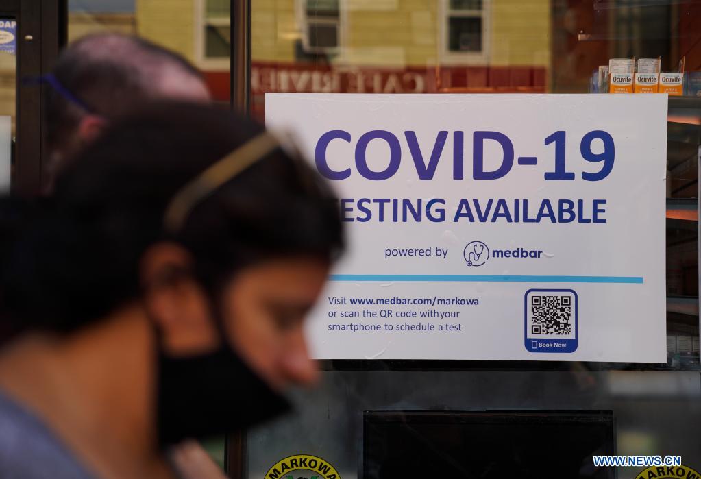 A pedestrian walks past a COVID-19 testing billboard in New York, the United States, July 26, 2021. (Xinhua/Wang Ying)