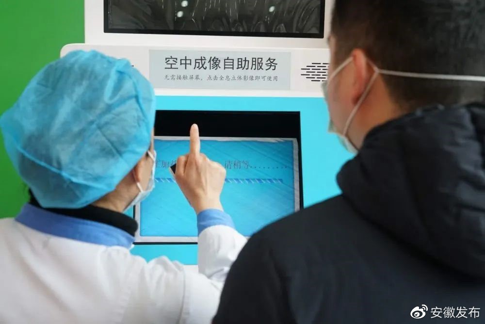 Photo shows a contactless self-service hospital registration machine that adopts interactive holographic aerial imaging technology. (Photo/WeChat account of cyberspace administration of Anhui province)