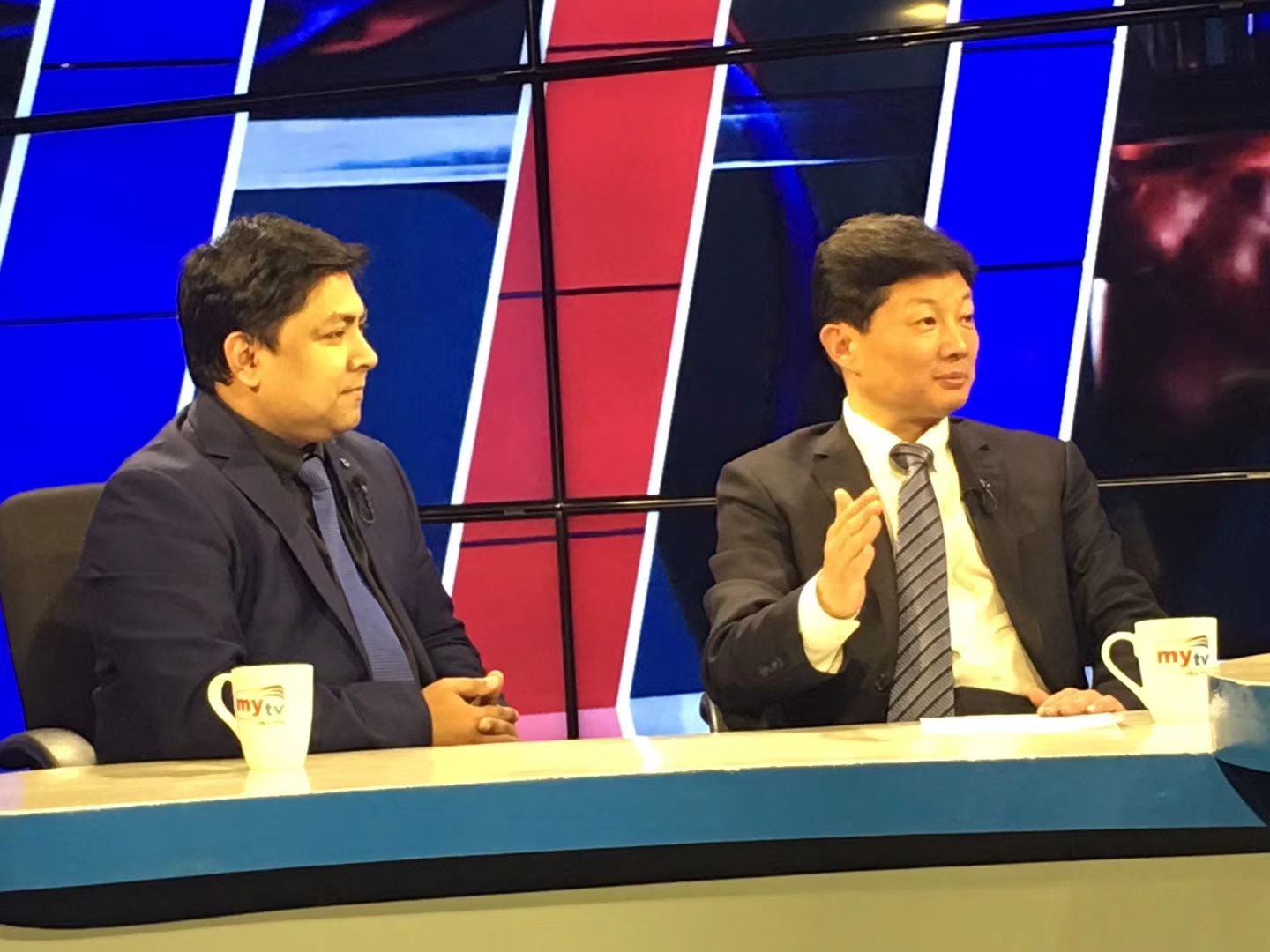 Prof. Wu Yongjian (R) and Dr. Misbahul Ferdous disscuss BRI-related health issues during a Bangladeshi media program. (Photo provided by the interviewee)