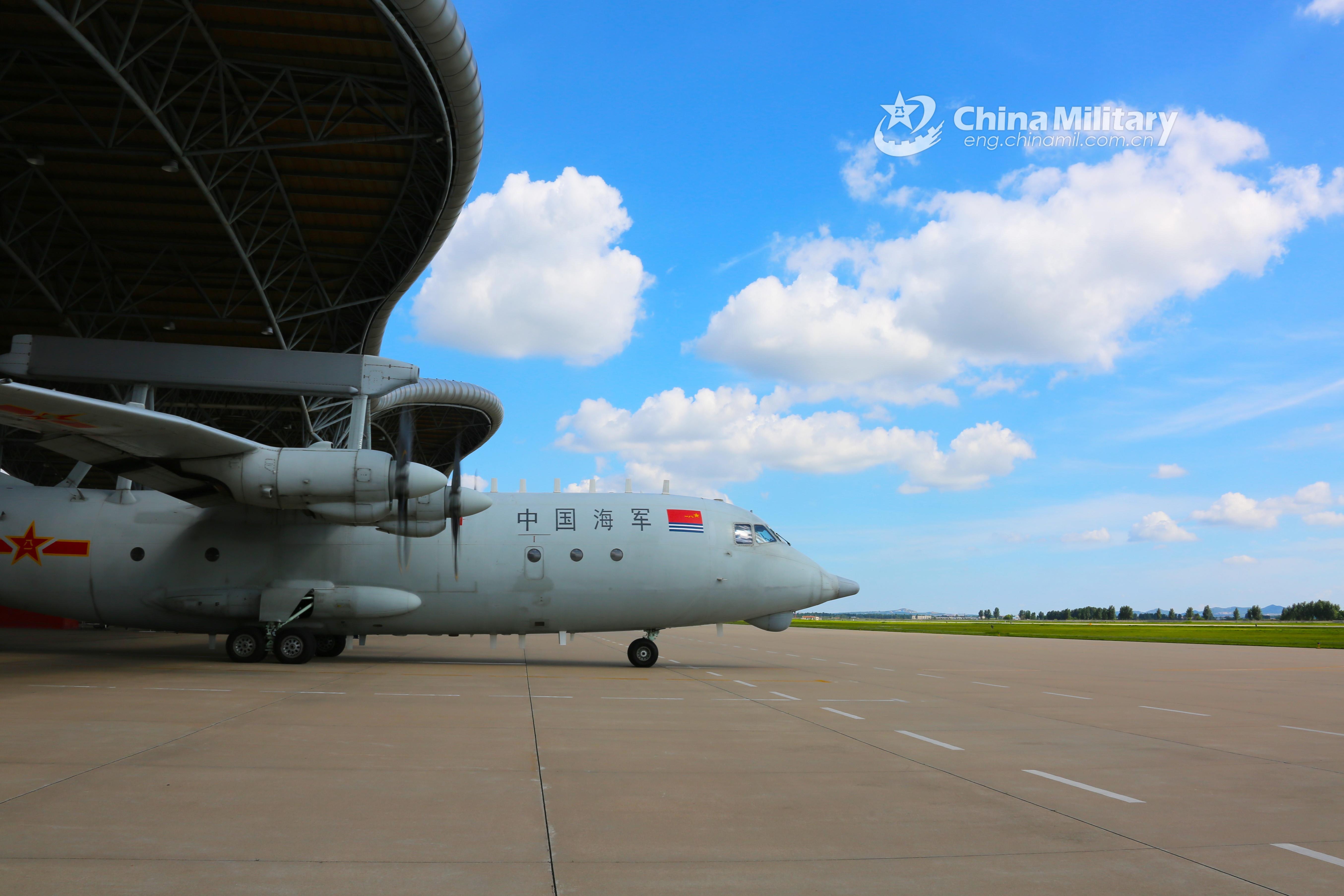 An airborne early warning (AEW) aircraft attached to a naval aviation unit under the PLA Northern Theater Command taxies out of the hangar prior to a round-the-clock flight training exercise in east China's Shandong Province in early August, 2021. (eng.chinamil.com.cn/Photo by Xing Yun and Duan Yanbing)