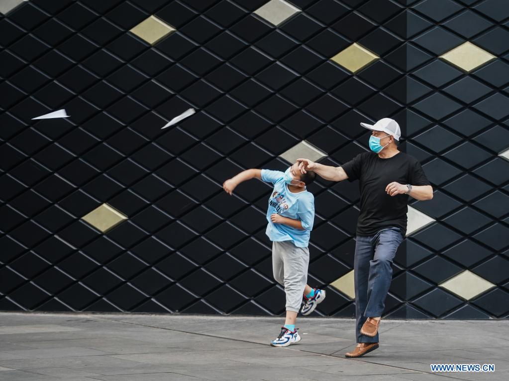 Citizens throw paper planes at a square in Nanjing, east China's Jiangsu Province, Aug. 19, 2021. East China's Nanjing City, which witnessed the country's latest resurgence of cluster infections of coronavirus attributable to the Delta variant, cleared all medium and high-risk areas for COVID-19 on Thursday. (Xinhua/Ji Chunpeng)