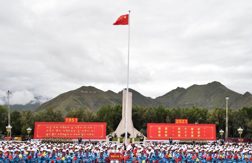 A grand gathering is held to celebrate the 70th anniversary of the peaceful liberation of Tibet at the Potala Palace square in Lhasa, southwest China's Tibet Autonomous Region, Aug. 19, 2021. More than 20,000 people from various ethnic groups attended the event held in Lhasa. (Xinhua/Chogo)
