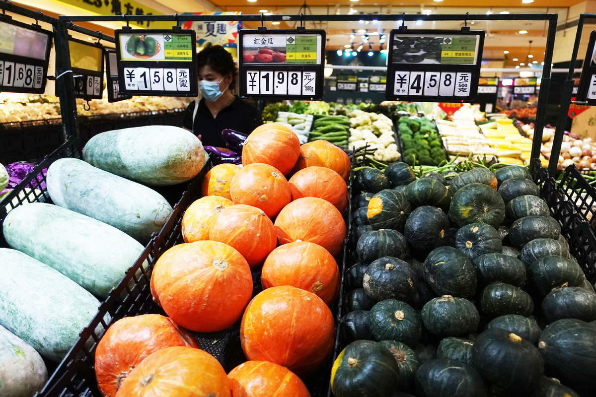 A customer buys vegetables at a supermarket in Nanjing, capital of east China's Jiangsu Province, Aug 9, 2021. [Photo/Xinhua]