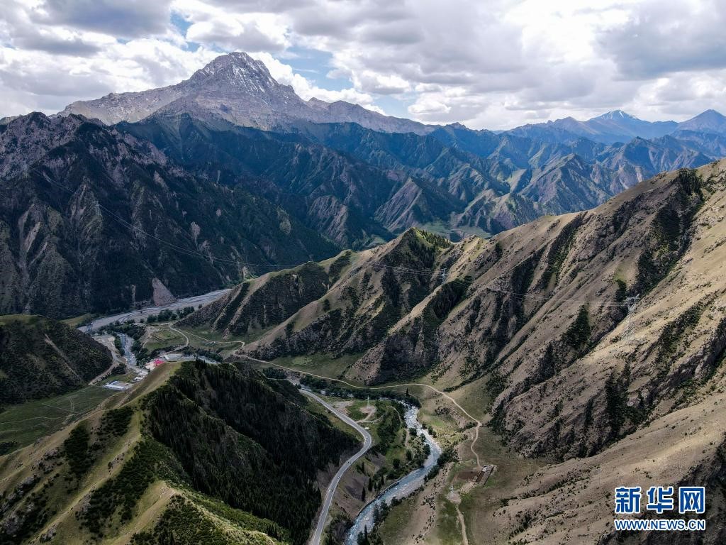 Aerial photo taken of a section of the 560-kilometer-long Duku Highway, a scenic roadway cutting through the snow-capped peaks, forests and river valleys of the Tianshan mountain range, connecting up the northern and southern sub-regions of northwest China’s Xinjiang Uyghur Autonomous Region. (Xinhua /Gao Han)