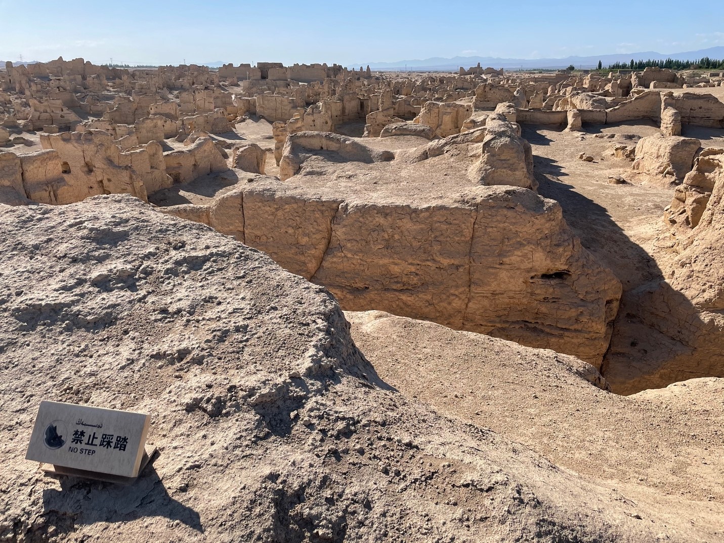 Commanding a plateau wedged in between two converging river ravines, the sprawling earthen ruins of the Ancient City of ‘Jiaohe’, once a bustling trading center and frontier outpost situated along the Silk Road, provides a vivid historical reminder of the flourishing interchange of commerce and cultures over the course of millennia within the Yarnaz Valley on the outskirts of Turpan City in northwest China’s Xinjiang Uyghur Autonomous Region. (People’s Daily Online/Luke Witzaney)